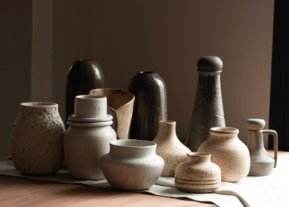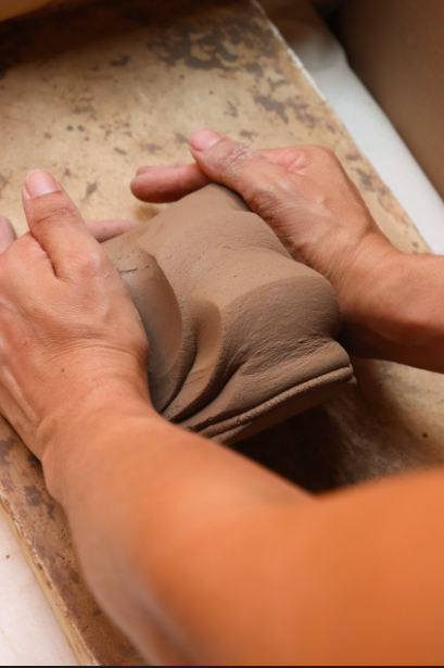 Criação intuitiva de peças que refletem a natureza e a textura do barro.